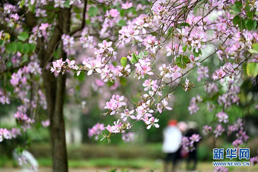 近日,广西柳州市种植的洋紫荆、黄花风铃木以及木棉花陆续盛开,如同给城市穿上靓丽的春装,美不胜收。